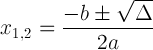 Δ = b 2 - 4 ac