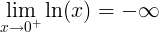 Limita blízká 0 přirozeného logaritmu x, když se x blíží nule, je minus nekonečno: