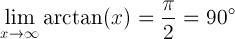 X അനന്തതയിലേക്ക് അടുക്കുമ്പോൾ x ന്റെ ആർക്റ്റാൻജന്റിന്റെ പരിധി pi / 2 റേഡിയൻ അല്ലെങ്കിൽ 90 ഡിഗ്രിക്ക് തുല്യമാണ്:
