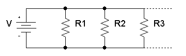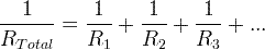 Общее эквивалентное сопротивление резисторов, включенных параллельно R Total , определяется как: